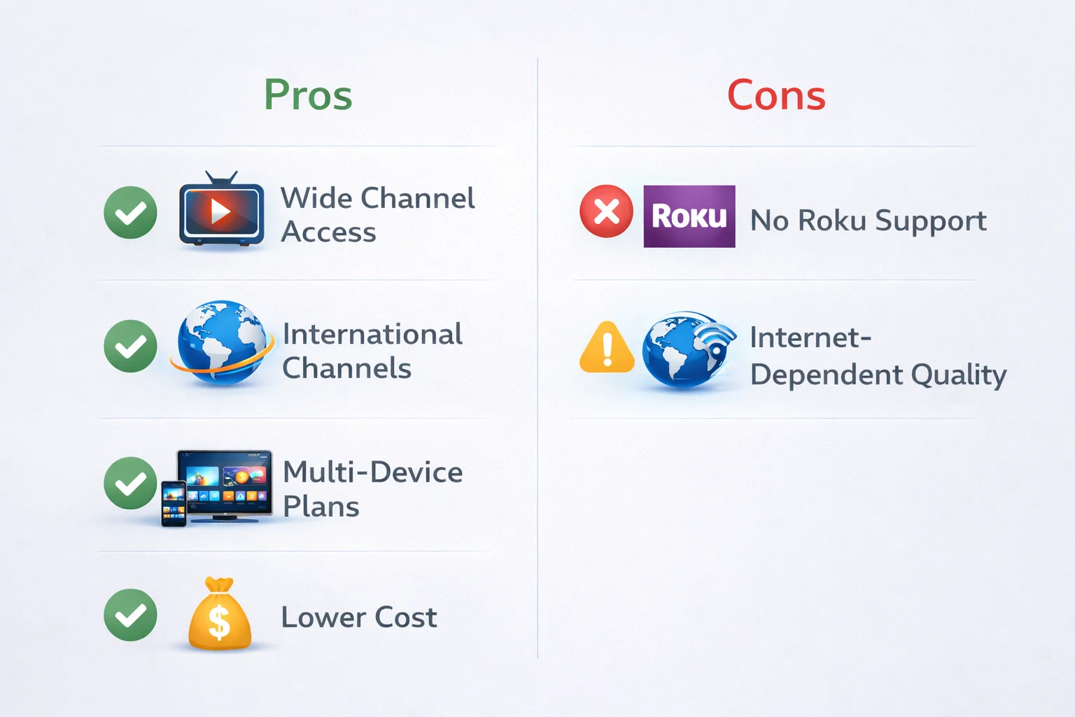 Overall, Xtreme HD IPTV offers solid value in 2026 with lower monthly costs and wide content access. It works best as a primary TV option for users with good broadband, but may not suit those with weak internet or limited device support like Roku.