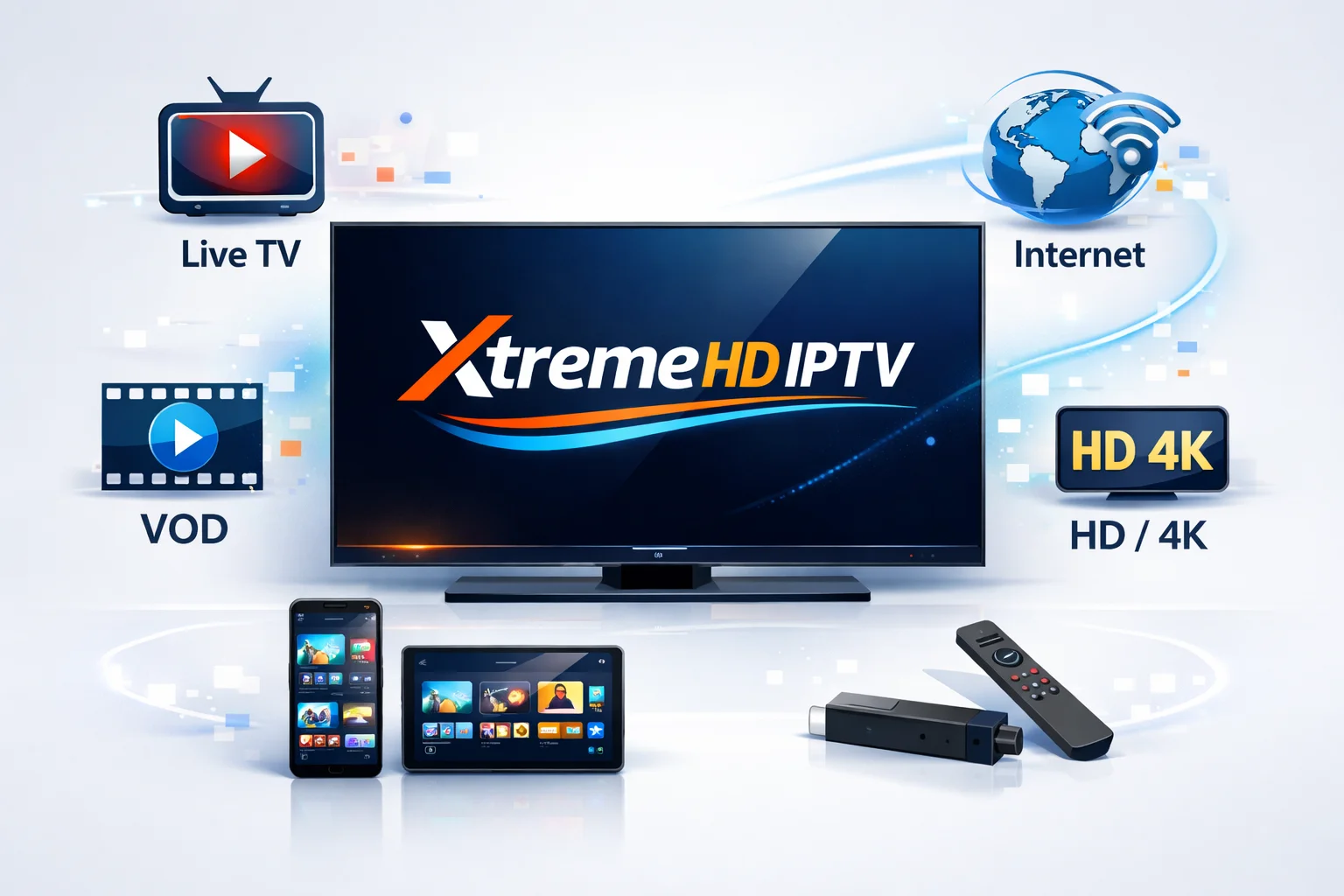 Xtreme HD IPTV is a paid service that lets you watch live TV channels and on-demand content over the internet instead of cable or satellite. You access it using IPTV apps with login details like M3U or Xtream Codes. It offers over 20,000 live channels, including news, sports, and movies, along with a large library of films and series. The streaming quality can go from standard to HD and even 4K, depending on your internet speed, and it works on devices like smart TVs, Firestick, phones, and tablets.